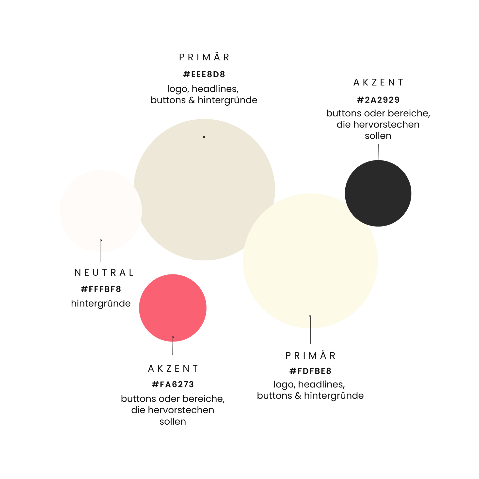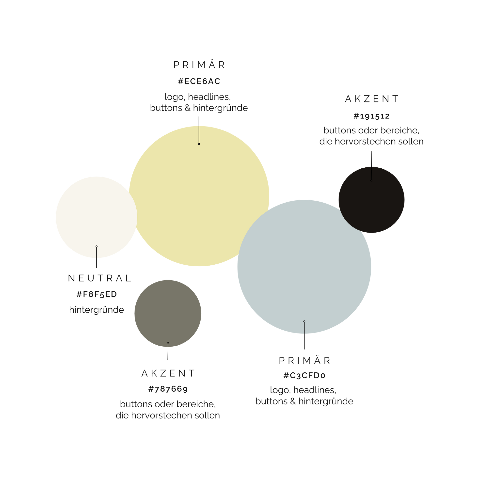 → Harmonisches Farbkonzept, Farbpsychologie, Moodboard & finale Farbpalette